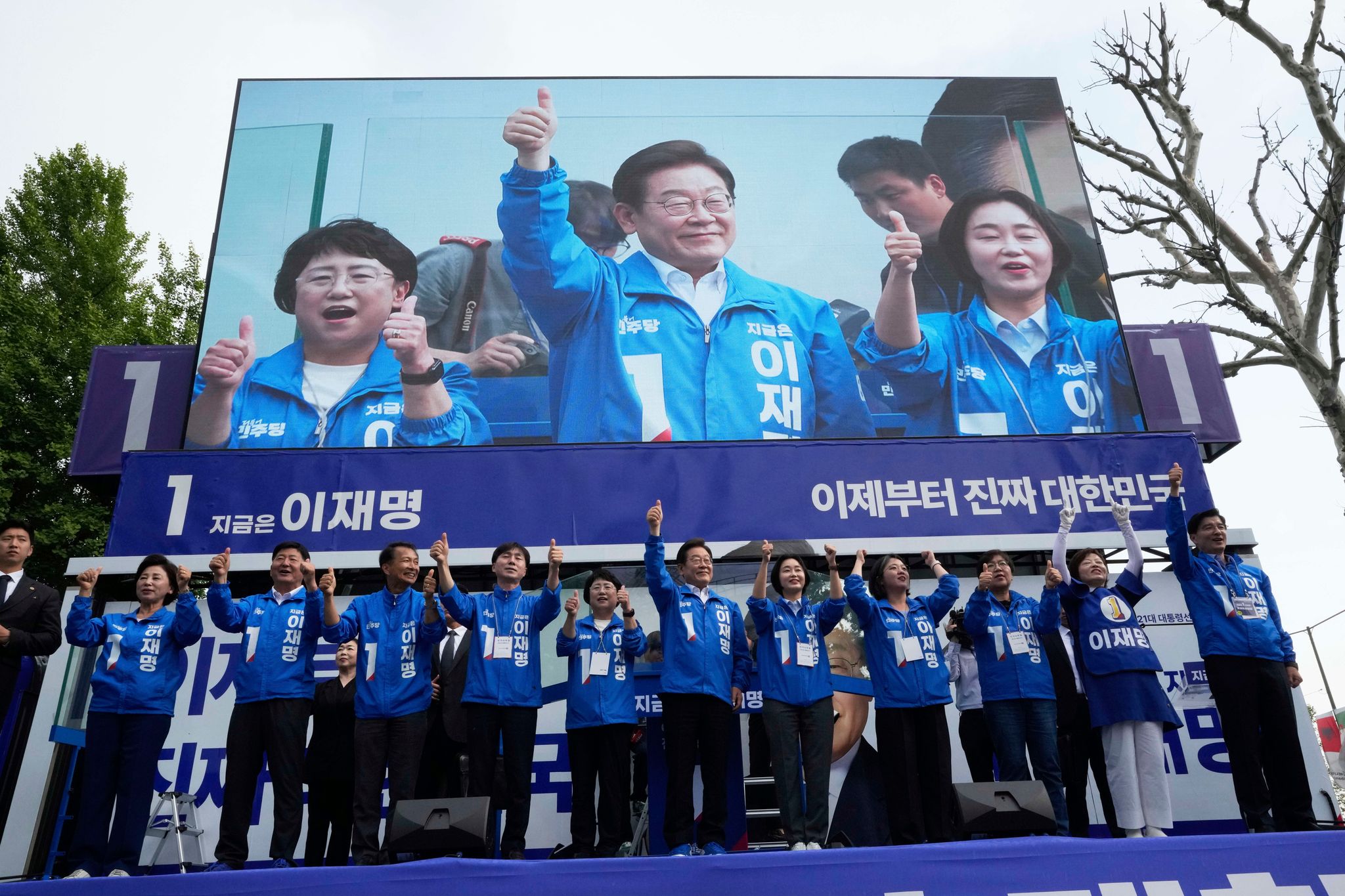 Earlier, Lee appeared before thousands of cheering supporters on Seoul's streets. He didn't formally claim victory, but reiterated his major policy goals, such as revitalizing the economy, promoting peace with North Korea and easing a domestic divide.