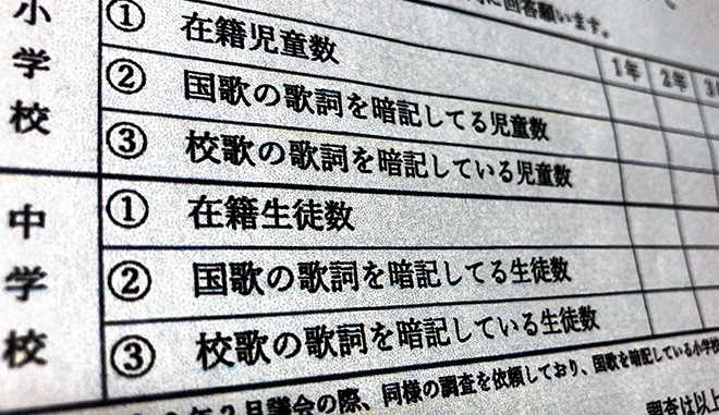 Two years ago, the Suita board of education in Osaka Prefecture, in responding to a request from city assembly members, carried out a study about whether students had memorized the lyrics of “Kimigayo.”