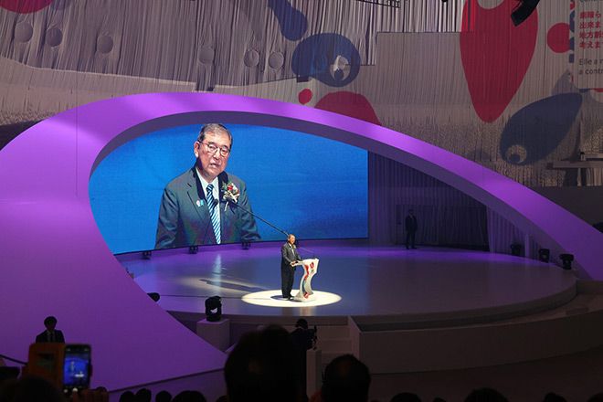 The official mascot of the just-ended Osaka Kansai Expo has found a temporary resting space at its original location in front of city hall here.