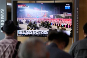 North Korea puts hazmat suits on parade for national day, but no missiles